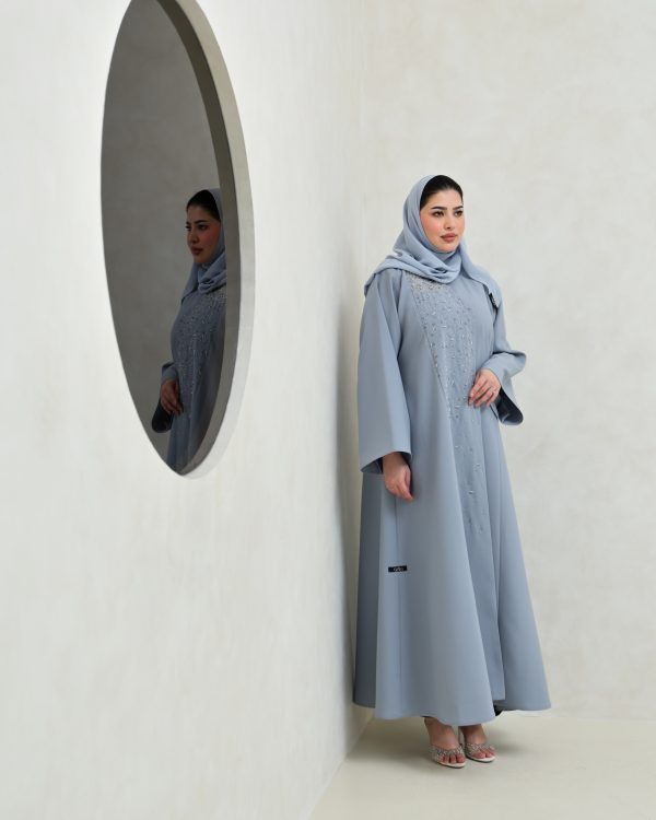 عباية باللون الأزرق الفاتح مع إضافة شك فضي