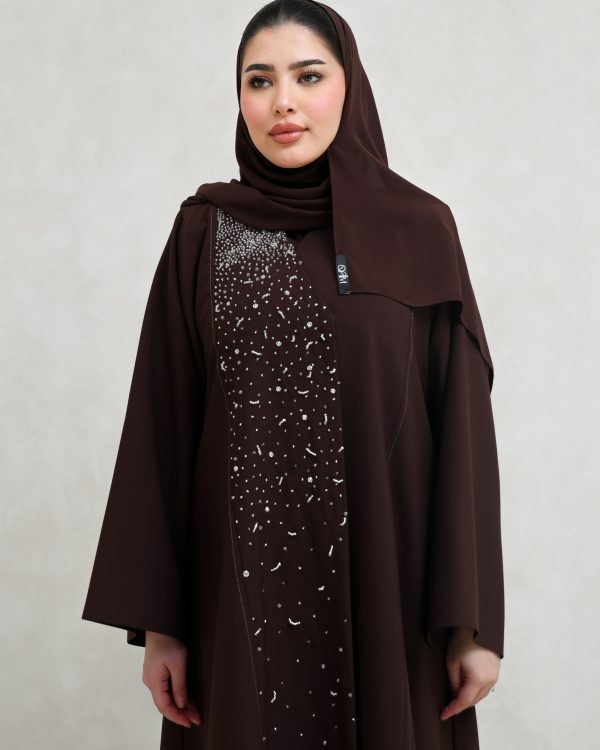 عباية شيفون باللون البني مبطنه بالشيلة.
