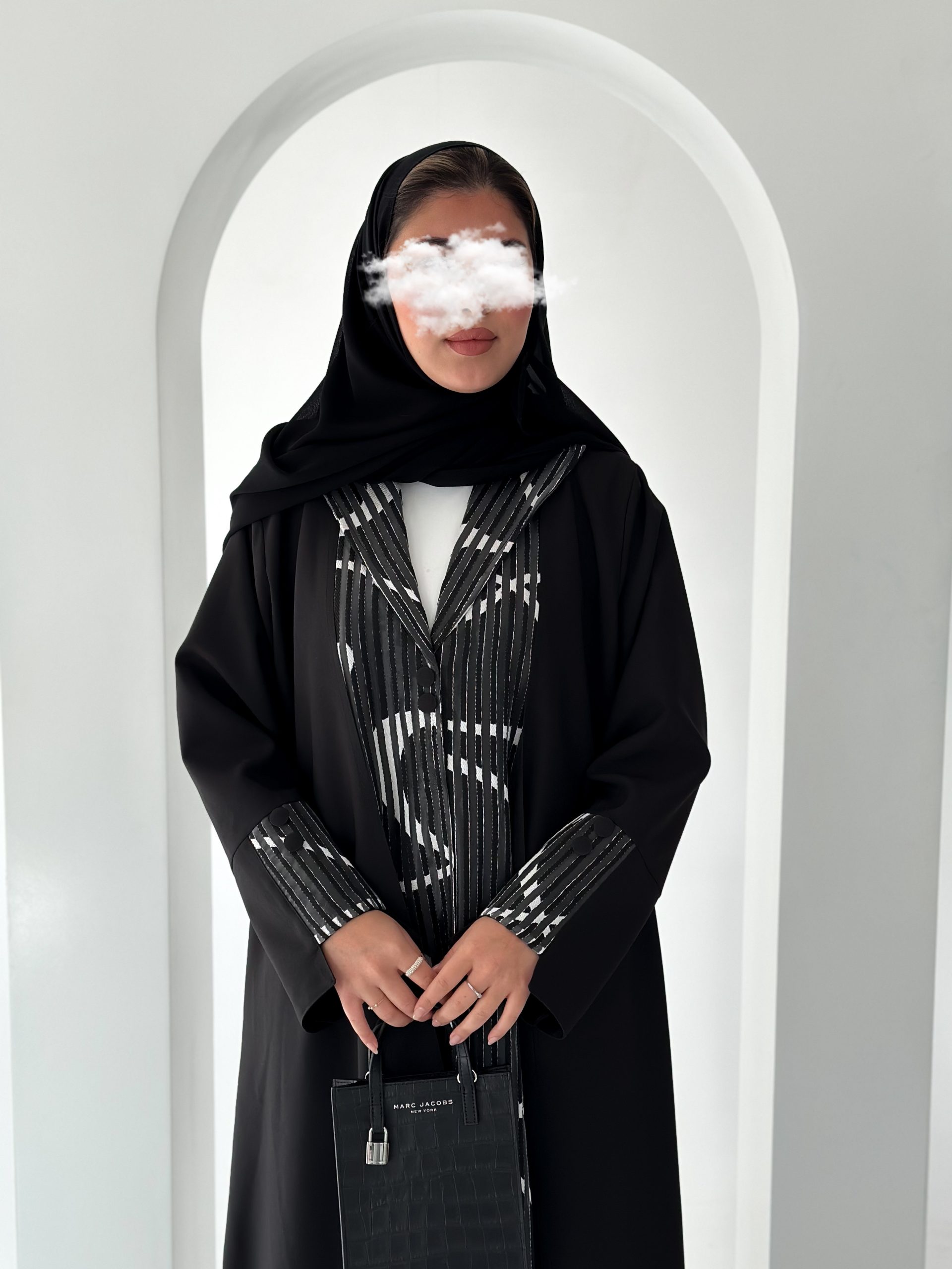 عباية بليزر بقماش المنيميت مع الاورقنزا من الامام.