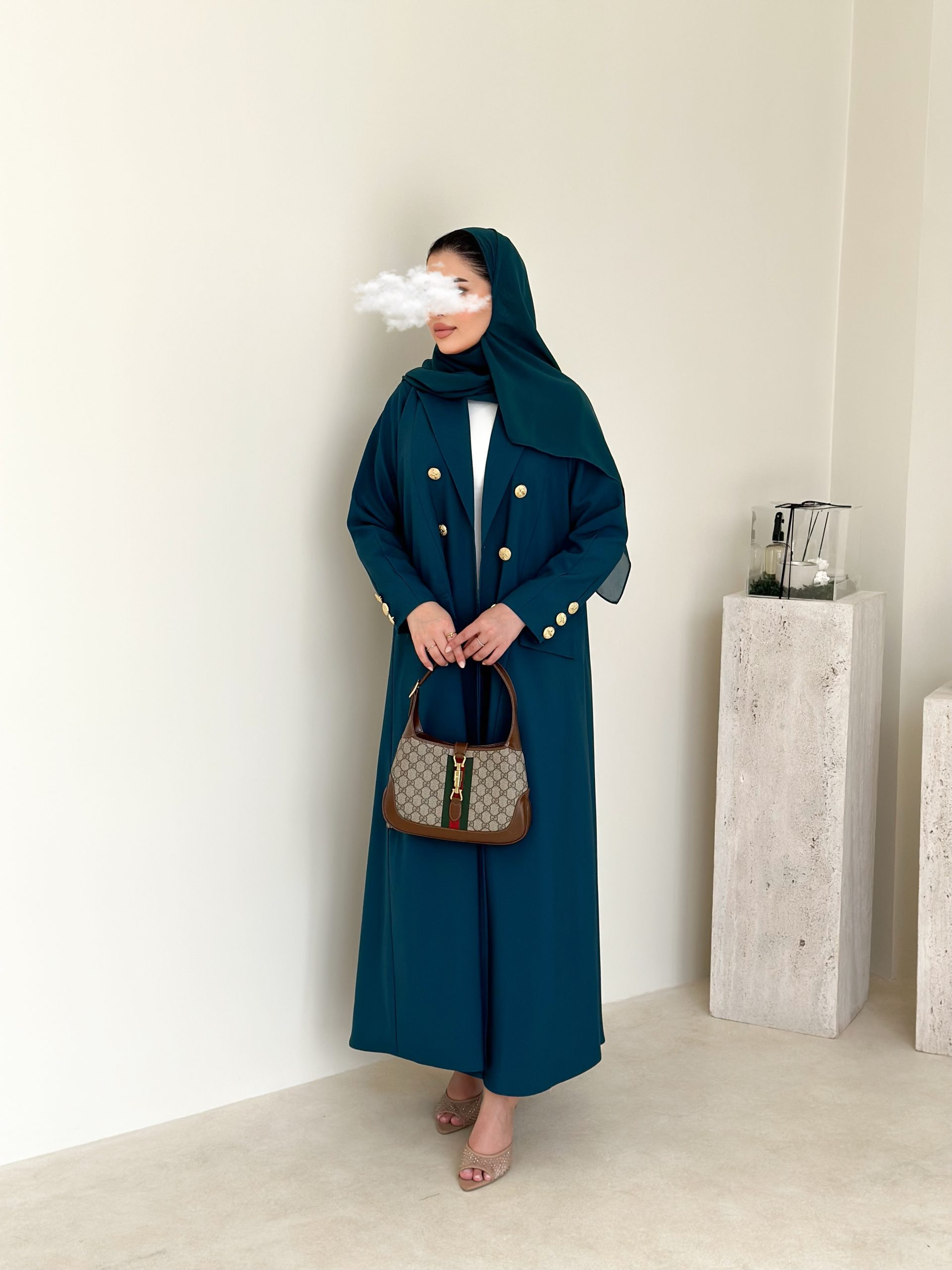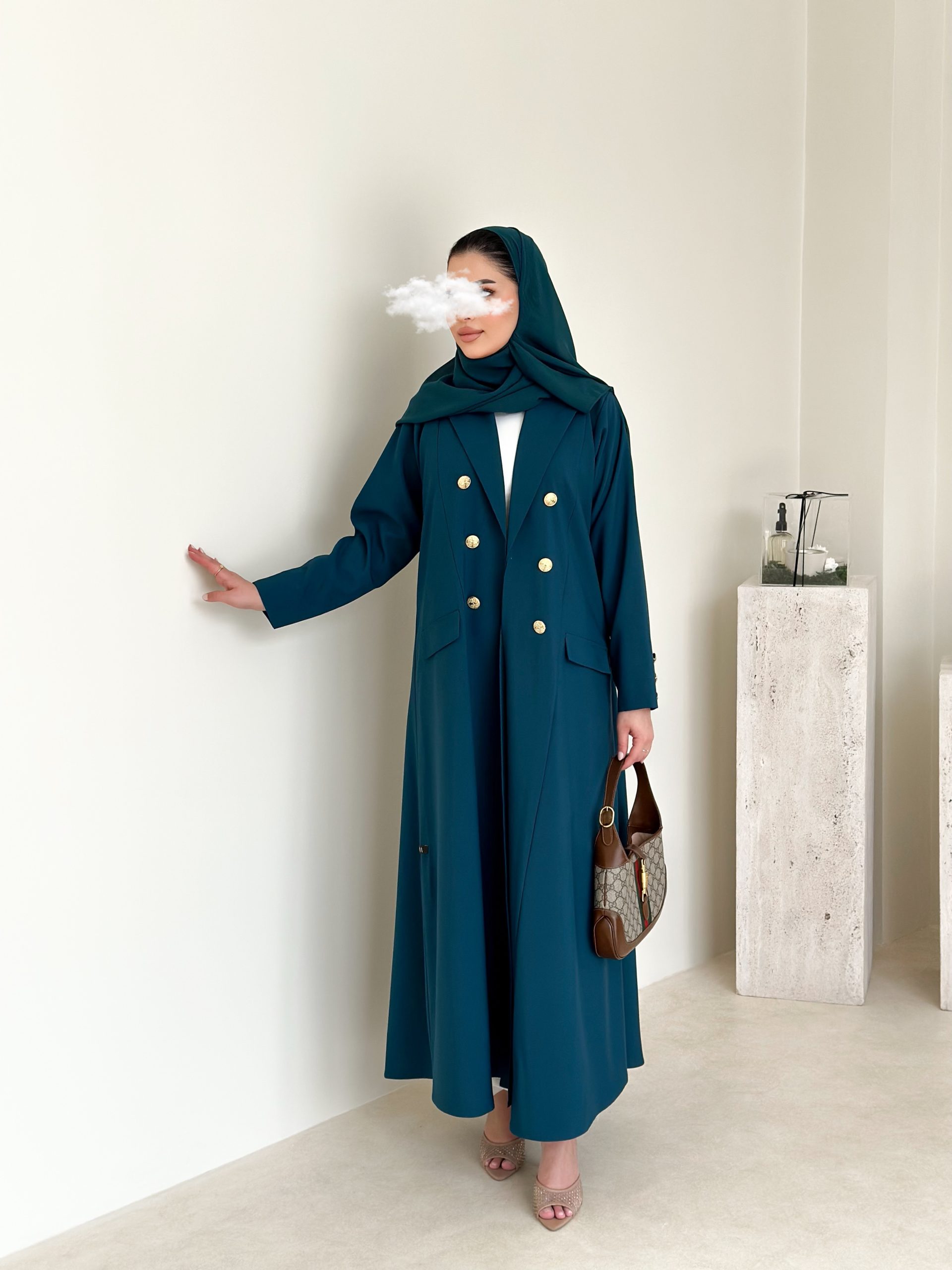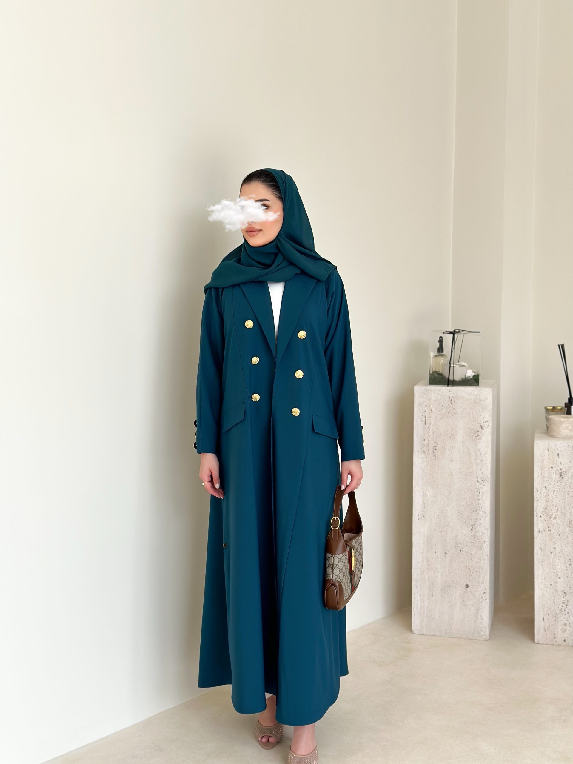 عبايه بليزر بقماش المنيميت خضراء مع ازرار ذهبيه