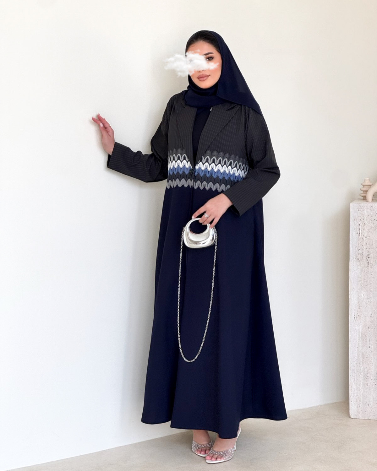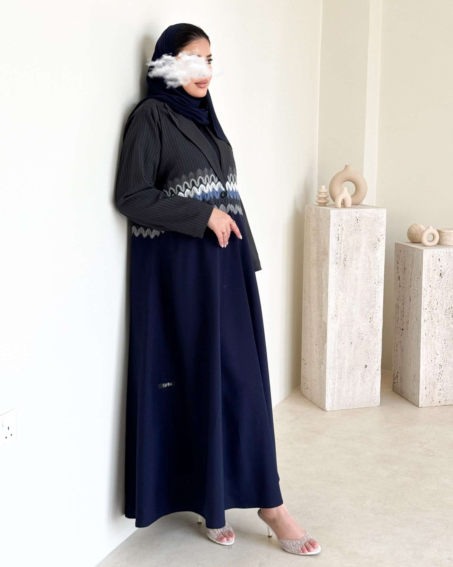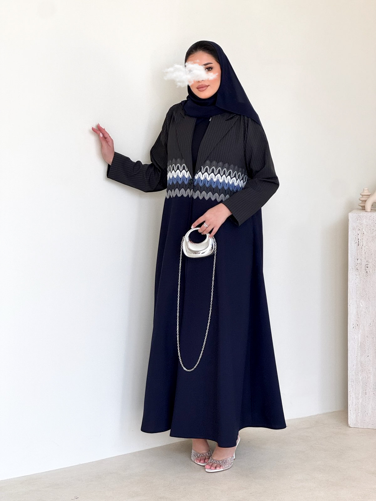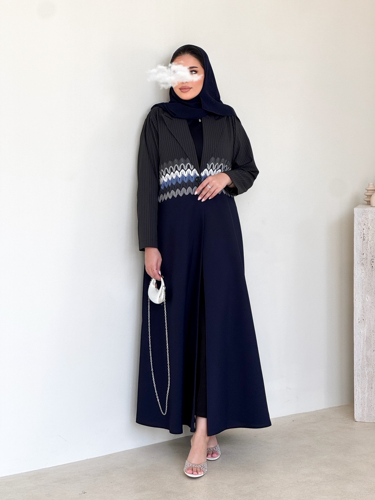 عباية بقماش المنيميت الرصاصي المخطط و الكحلي السادة.