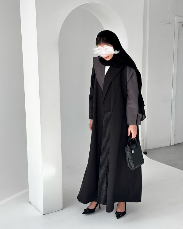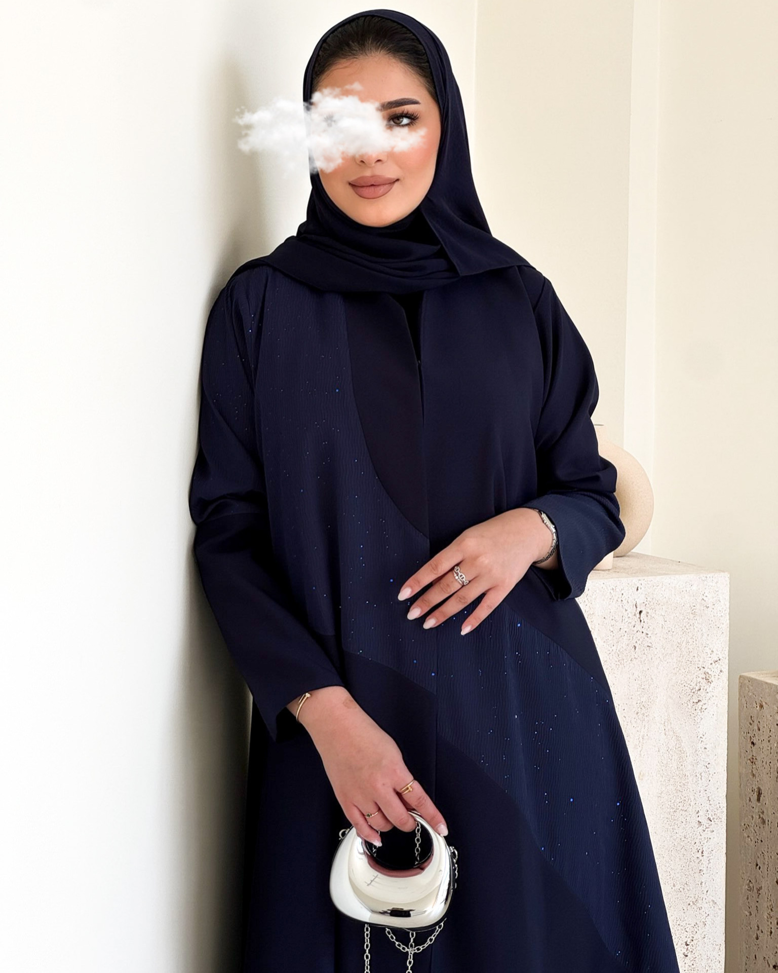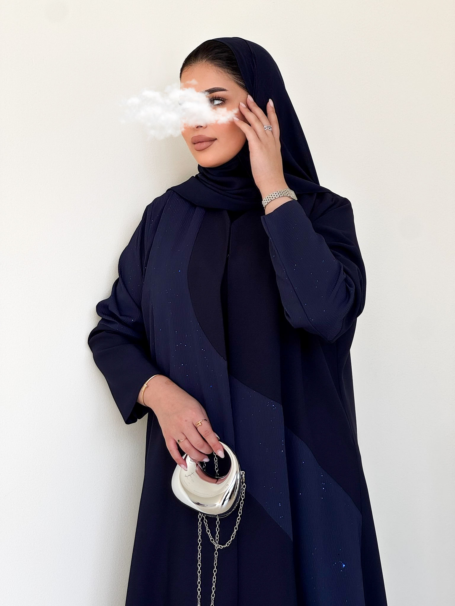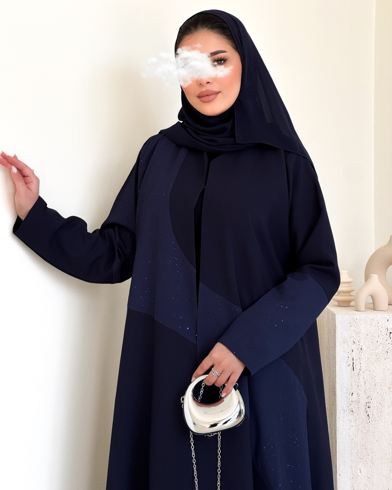 عباية بقماش المنيميت والتفته اللامع باللون الكحلي