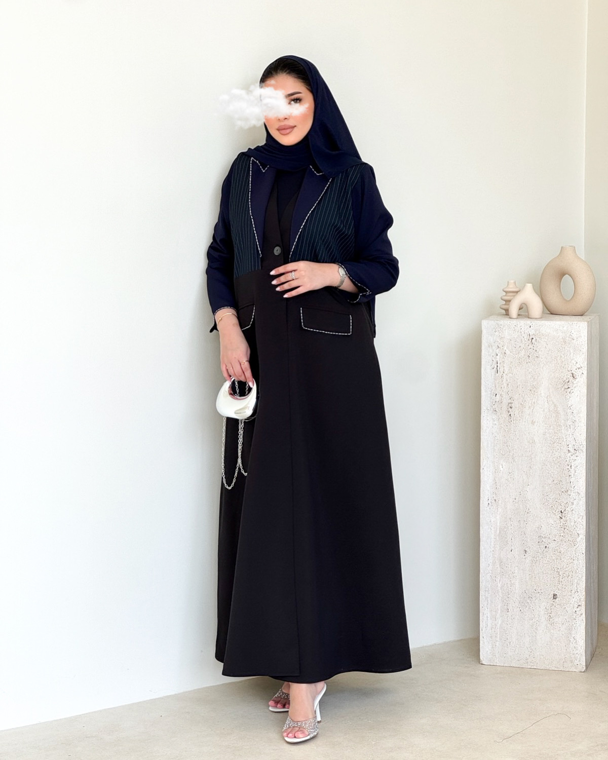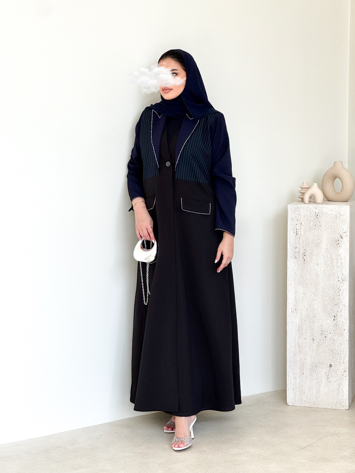 عباية بقماش المنيميت المخطط و الساده المطرز.
