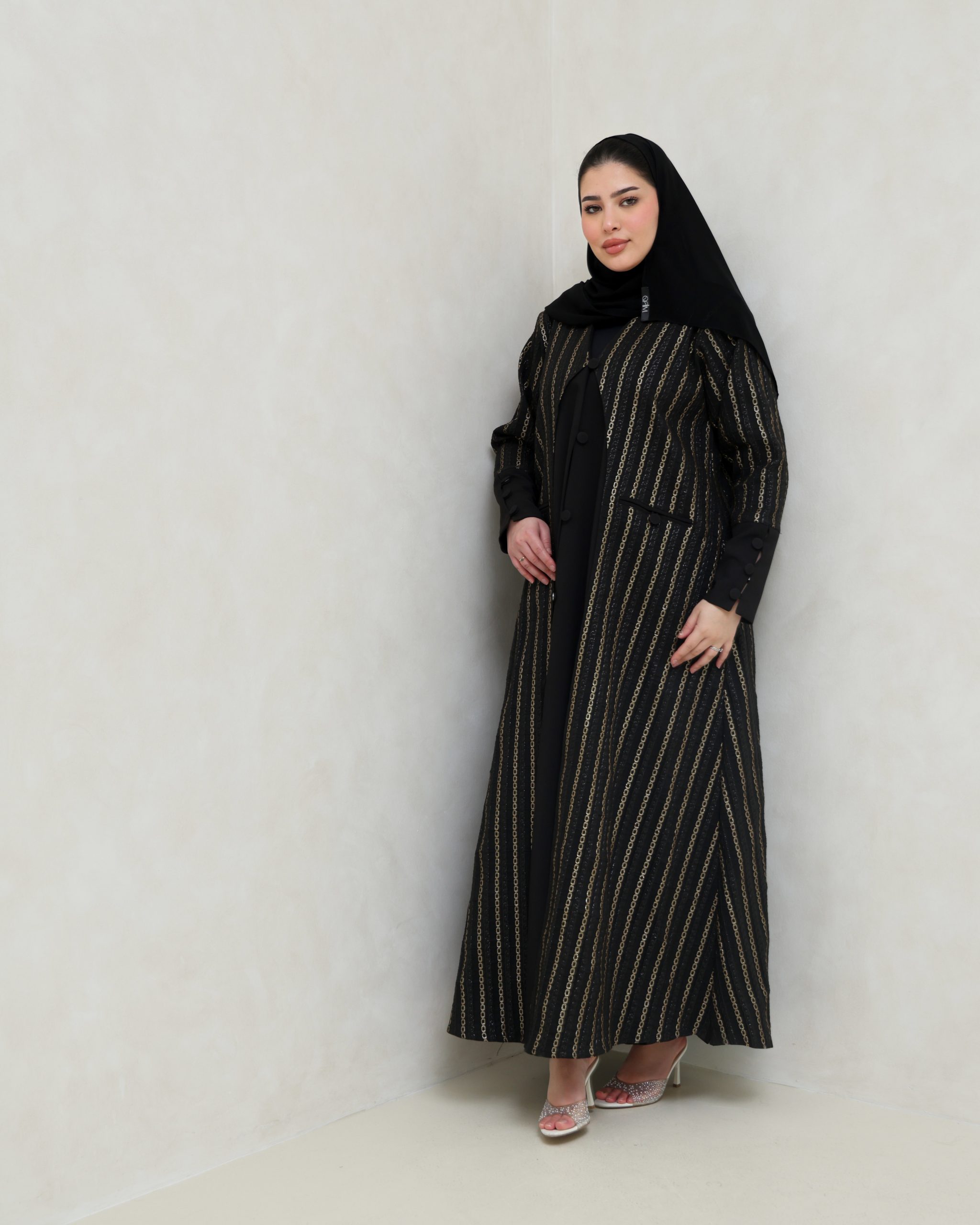 عباية بقصة البليزر باللون الأسود والذهبي