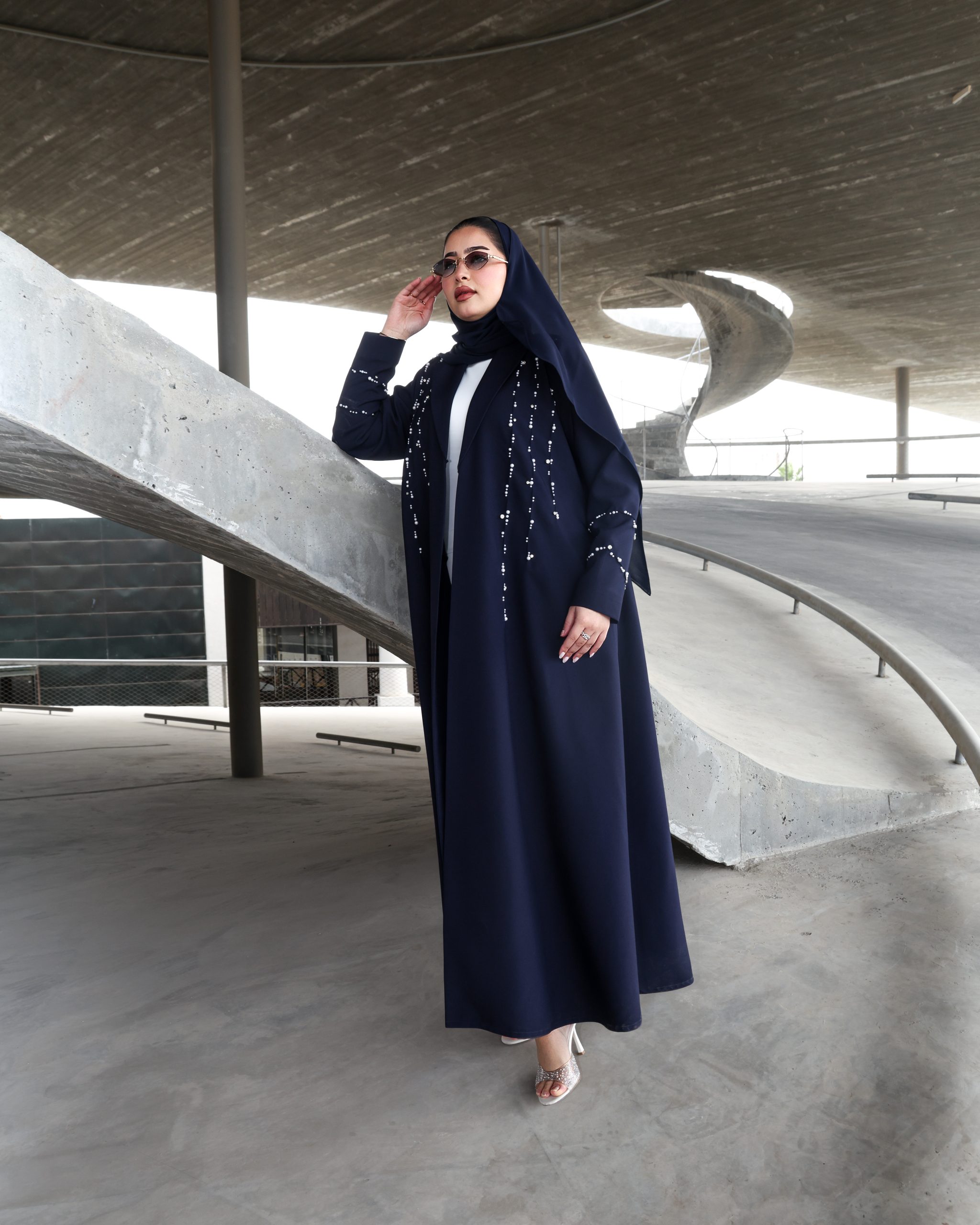عباية باللون الكحلي مع شك بلؤلؤ و الكرستال.